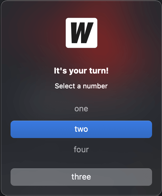 the second button is shown as default. When return is pressed, the value "two" is returned.